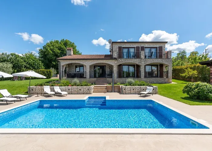Továbbá mikrohullámú sütő, hűtő és konyhai edények biztosított önellátásra. A legközelebbi repülőtér a Pula, alig 40 perc autóútra a szállástól. Ez a villa biztosít kinti úszómedencét.